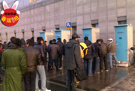 春运买票紧张,移动厕所供不应求