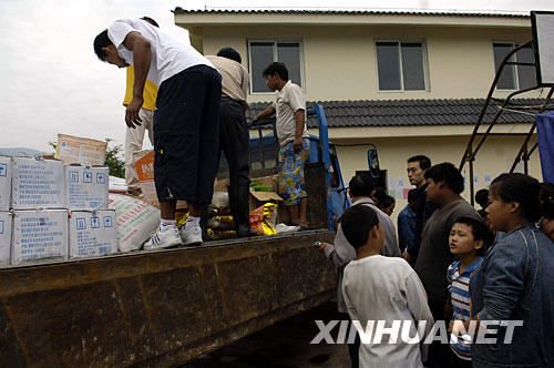 8月31日,方便食品和大米等已送到攀枝花市仁和区大龙潭彝族乡拉鲊村拉鲊小学内的临时棚屋安置点内。