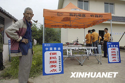 8月31日,中国移动工作人员在攀枝花市仁和区大龙潭彝族乡拉鲊村拉鲊小学内的临时棚屋安置点内安装免费电话。新华社记者 海明威 摄