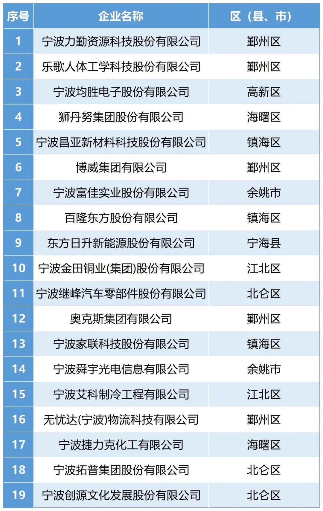 这些上榜企业多为上市公司或细分行业龙头,分别是力勤资源、乐歌股份、均胜电子、狮丹努、昌亚新材料、博威集团、富佳实业、百隆东方、东方日升、金田铜业、继峰股份、奥克斯、家联科技、舜宇光电、艾科制冷、无忧达、捷力克化工、拓普集团、创源股份。