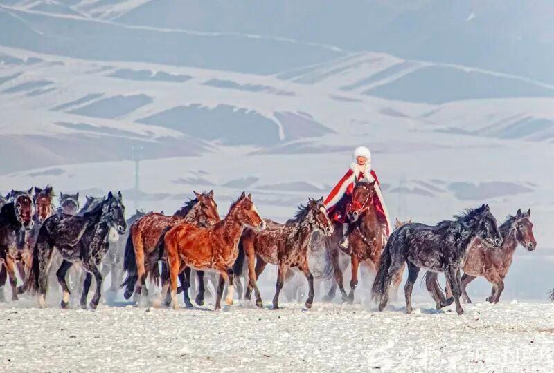 2020年12月31日,贺娇龙在昭苏县天马旅游文化园策马雪原,为家乡宣传。李文武摄
